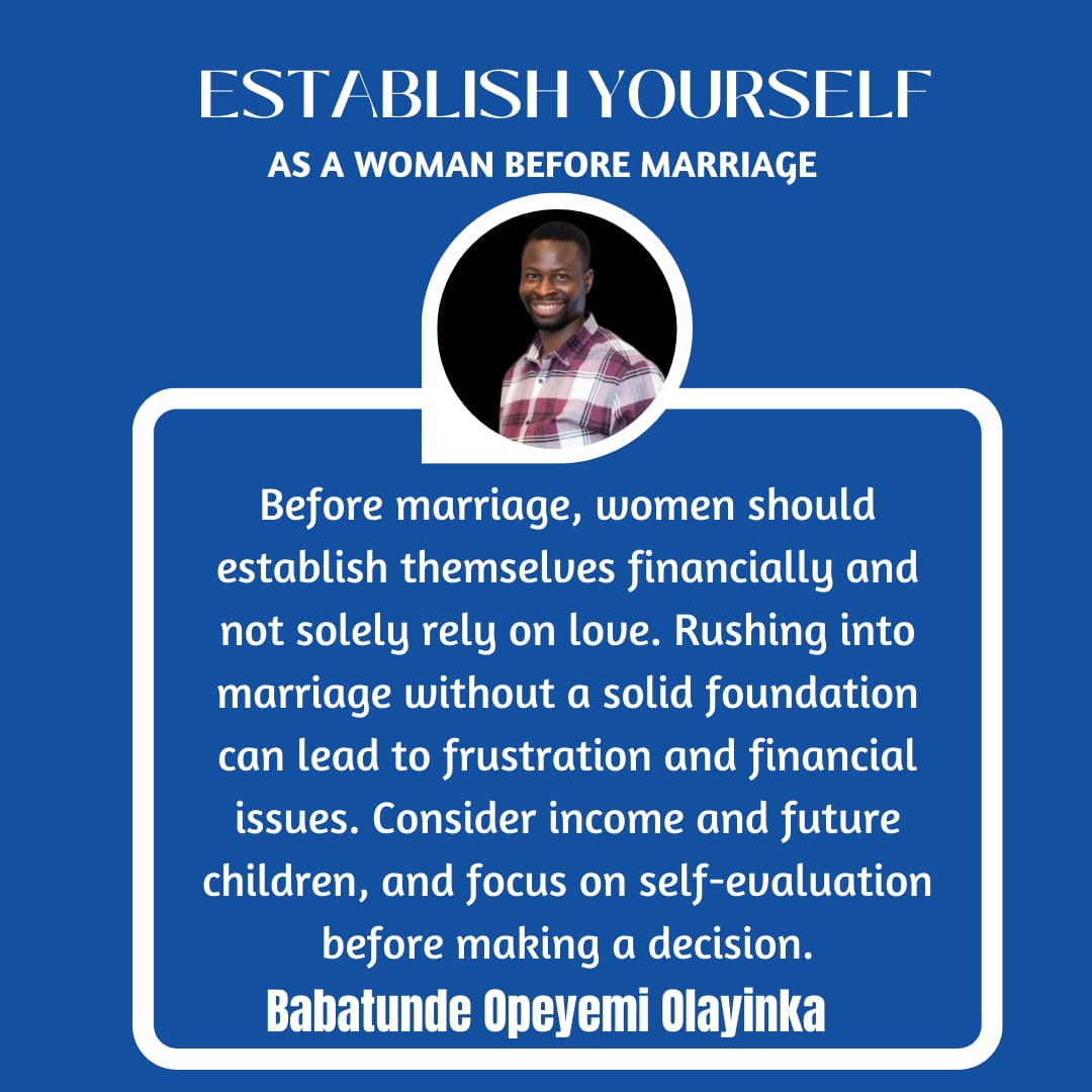 ESTABLISH YOURSELF AS A WOMAN BEFORE MARRIAGE.
